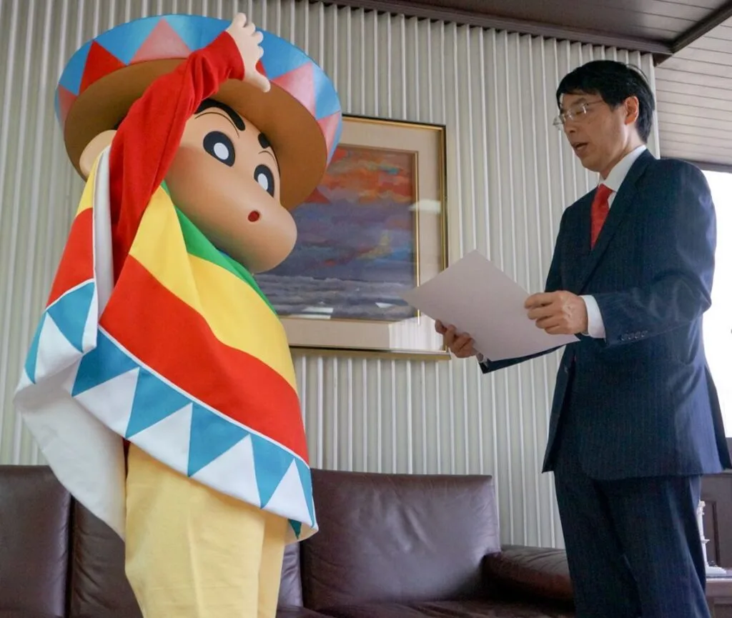 Recordemos que todo esto es parte de la promoción de la nueva película Eiga Crayon Shin-chan: Ora no Hikkoshi Monogatari ~Saboten Daishūgeki la cual podríamos traducir como Crayon Shin-Chan La Película: Mi Historia de la Mudanza~El Gran Ataque del Cactus~.
