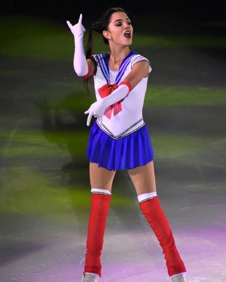 Cuanto tu senpai te nota es más que placentero, y en este caso, la famosa patinadora sobre hielo de origen ruso, Evgenia Medvedeva, a quien algunos conocerán debido a que fue campeona mundial de esta disciplina este año, realizó una rutina coreográfica vestida como Sailor Moon dentro de un evento en Japón al que fue invitada y ni más ni menos, Naoko Takeuchi, mangaka creadora de “Pretty Guardian Sailor Moon“, notó a esta deportista, quien cabe mencionar, es muy fan de la serie.