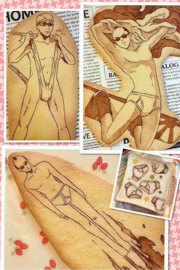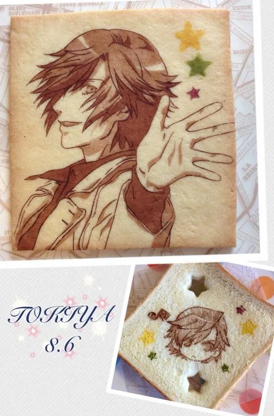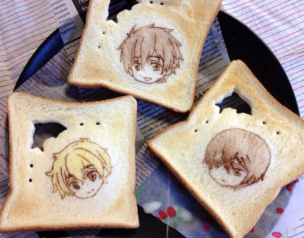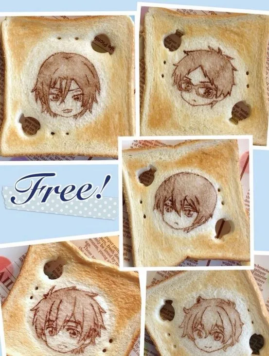 En dicho pan tostado, podemos encontrar arte relacionado a una gran variedad de series anime como lo son Gintama, UtaPro, Bleach, Shingeki no Kyojin y mi favorita, Free!