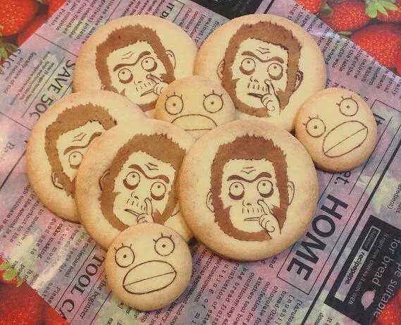Pero esto no es todo, ya que parece que HTMY tiene mucho tiempo para crear cosas bonitas y no sólo se enfocó en realizar obras de arte en pan tostado, sino que además lo ha hecho también en galletas. Aquí también utiliza colorantes vegetales para darle vida a los personajes expuestos en tan ricos postres.