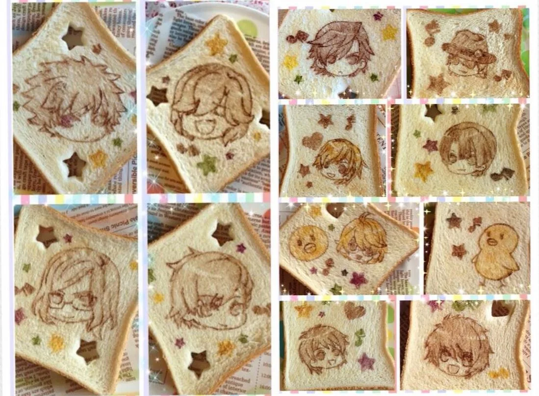 En dicho pan tostado, podemos encontrar arte relacionado a una gran variedad de series anime como lo son Gintama, UtaPro, Bleach, Shingeki no Kyojin y mi favorita, Free!