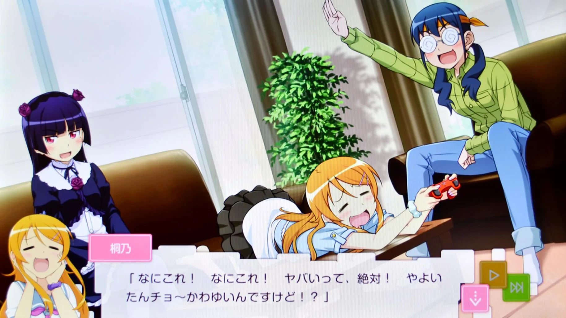 La trama es bastante sencilla la cual sin caer en spoilers se resume en que después de estar jugando idolm@ster (Si, en oreimo juegan imas = OMG * .3*)/… de pronto en el nucleo de waifus del mundo de oreimo surge la inquietud de intentar ser idols y como alguien la tiene que hacer de “producer”, pues uno deberá tomar ese difícil papel y apoyar a la chica que elijamos. Como dato adicional este juego se ubica cronológicamente después de la serie, por lo que cada quien podrá buscar su final preferido.